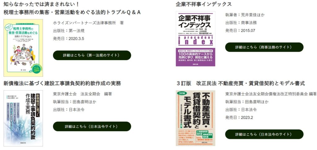 会社法務、人事労務、家事等幅広い書籍を多数出版 |